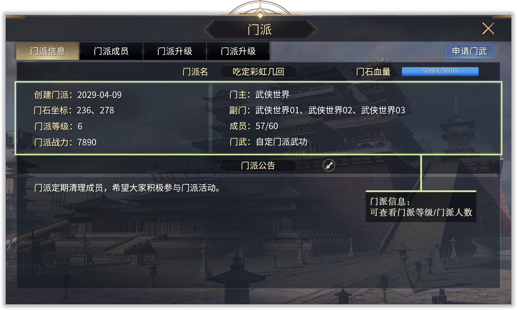 10、转让门主,转完对方拒绝转回门派就不是你的了,转让需谨慎。